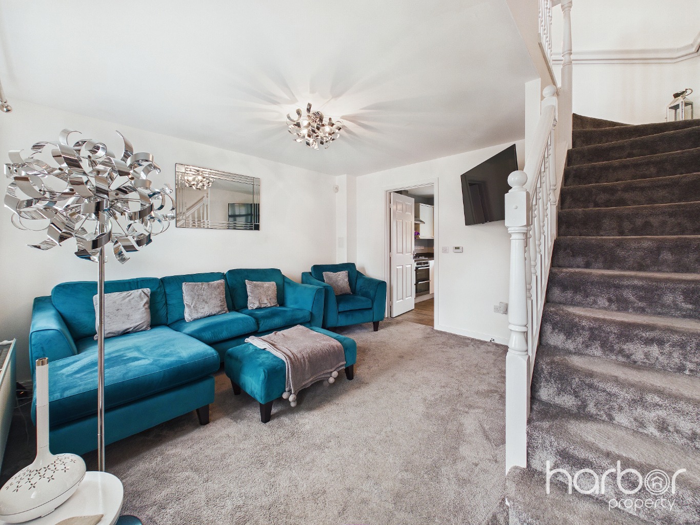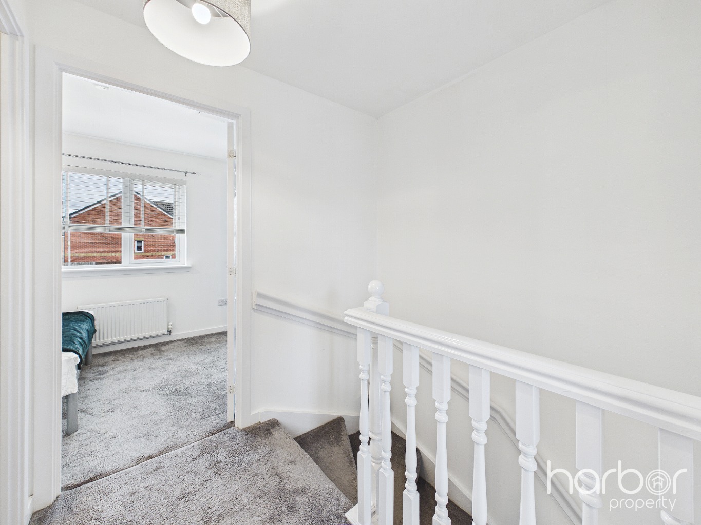 The entrance hallway welcomes you with modern doors throughout, setting the tone for the quality found in this property. The living room is a bright and comfortable space with modern soft carpets and large window that floods the room with natural light. Finished in neutral tones, it's a lovely space that's ready to enjoy from day one.