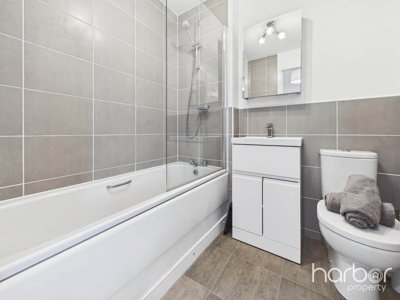 Upstairs, there are two good-sized bedrooms, both with large windows and enough room for freestanding furniture. The bathroom is fresh and modern, with a back-to-wall WC, hand basin with storage underneath, and a bath with an overhead shower - giving you the flexibility of either.