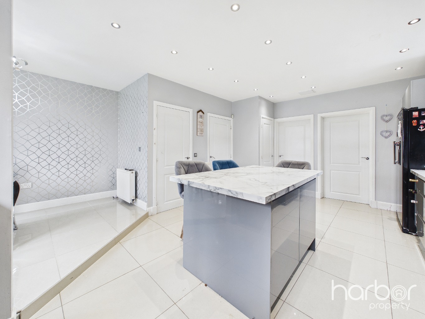 From the moment you arrive, the property makes a strong first impression with a large monoblock driveway, providing ample parking and leading to the front entrance. Inside, a bright and welcoming entrance hallway sets the tone for the home, featuring a stylish tiled floor and an airy feel that flows throughout the ground level.